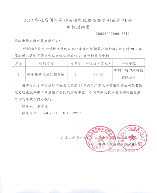 特力康中標(biāo)國(guó)網(wǎng)黑龍江送變電工程公司的2024年度第18次物資類競(jìng)爭(zhēng)性談判采購(gòu)項(xiàng)目——慶陽驅(qū)鳥器物資框 特力康中標(biāo)國(guó)網(wǎng)甘肅省電力公司省管產(chǎn)業(yè)單位2024年第五次物資競(jìng)爭(zhēng)性談判授權(quán)采購(gòu)項(xiàng)目 中標(biāo)喜訊:深圳市特力康科技有限公司成功入圍許繼集團(tuán)綜合能源公司輸電線路視頻在線監(jiān)測(cè)裝置模塊集采項(xiàng)目 中標(biāo)喜訊:特力康成功中標(biāo)國(guó)網(wǎng)重慶市電力公司渝中一片區(qū)項(xiàng)目 特力康成功中標(biāo)國(guó)網(wǎng)天津市電力公司2024年第二次?物?資招標(biāo)項(xiàng)目 特力康中標(biāo)國(guó)網(wǎng)安徽省電力有限公司蕪湖供電公司2024年3月非物質(zhì)采購(gòu)項(xiàng)目 山東電網(wǎng) “穩(wěn)塔哨兵”:特力康智能桿塔傾斜監(jiān)測(cè)預(yù)警裝置筑牢電力桿塔安全防線 特力康科技輸電線路高清圖像監(jiān)控裝置,為河南輸電通道筑牢安全屏障 黃土高原護(hù)塔穩(wěn):特力康傾斜監(jiān)測(cè)裝置為山西電網(wǎng)筑牢根基 黔山冰防線:特力康 “數(shù)據(jù) + 圖像” 雙監(jiān)測(cè)守護(hù)貴州輸電線路 戈壁林區(qū)的 “火情哨兵”:特力康紅外熱成像裝置守護(hù)甘肅輸電線路 內(nèi)蒙電網(wǎng)裝上 “舞動(dòng)監(jiān)測(cè)眼”:特力康輸電線路防舞動(dòng)監(jiān)測(cè)系統(tǒng)守護(hù)線路安全 浙江電力裝上“氣象哨兵”:特力康裝置守護(hù)電網(wǎng)應(yīng)對(duì)臺(tái)風(fēng)暴雨 蜀道巡線不用“爬”:特力康視頻在線監(jiān)測(cè)裝置守護(hù)四川輸電鐵塔 風(fēng)雪中的 “防冰哨兵”:內(nèi)蒙古電力用特力康監(jiān)測(cè)系統(tǒng)筑牢覆冰防線 雙軸感知護(hù)塔穩(wěn):山西電力用特力康裝置破解采空區(qū)傾斜難題 寧夏配電線路安裝了我司防外破電子化智能警示牌