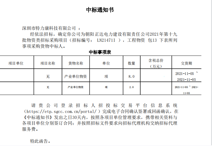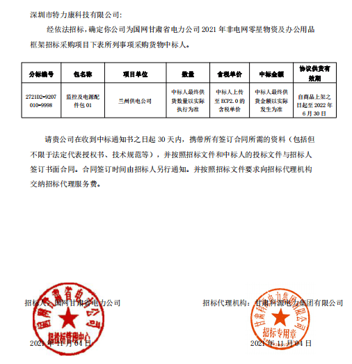 特力康中標(biāo)國網(wǎng)黑龍江送變電工程公司的2024年度第18次物資類競爭性談判采購項(xiàng)目——慶陽驅(qū)鳥器物資框 特力康中標(biāo)國網(wǎng)甘肅省電力公司省管產(chǎn)業(yè)單位2024年第五次物資競爭性談判授權(quán)采購項(xiàng)目 中標(biāo)喜訊:深圳市特力康科技有限公司成功入圍許繼集團(tuán)綜合能源公司輸電線路視頻在線監(jiān)測裝置模塊集采項(xiàng)目 中標(biāo)喜訊:特力康成功中標(biāo)國網(wǎng)重慶市電力公司渝中一片區(qū)項(xiàng)目 特力康成功中標(biāo)國網(wǎng)天津市電力公司2024年第二次?物?資招標(biāo)項(xiàng)目 特力康中標(biāo)國網(wǎng)安徽省電力有限公司蕪湖供電公司2024年3月非物質(zhì)采購項(xiàng)目 山東電網(wǎng) “穩(wěn)塔哨兵”:特力康智能桿塔傾斜監(jiān)測預(yù)警裝置筑牢電力桿塔安全防線 特力康科技輸電線路高清圖像監(jiān)控裝置,為河南輸電通道筑牢安全屏障 黃土高原護(hù)塔穩(wěn):特力康傾斜監(jiān)測裝置為山西電網(wǎng)筑牢根基 黔山冰防線:特力康 “數(shù)據(jù) + 圖像” 雙監(jiān)測守護(hù)貴州輸電線路 戈壁林區(qū)的 “火情哨兵”:特力康紅外熱成像裝置守護(hù)甘肅輸電線路 內(nèi)蒙電網(wǎng)裝上 “舞動(dòng)監(jiān)測眼”:特力康輸電線路防舞動(dòng)監(jiān)測系統(tǒng)守護(hù)線路安全 浙江電力裝上“氣象哨兵”:特力康裝置守護(hù)電網(wǎng)應(yīng)對(duì)臺(tái)風(fēng)暴雨 蜀道巡線不用“爬”:特力康視頻在線監(jiān)測裝置守護(hù)四川輸電鐵塔 風(fēng)雪中的 “防冰哨兵”:內(nèi)蒙古電力用特力康監(jiān)測系統(tǒng)筑牢覆冰防線 雙軸感知護(hù)塔穩(wěn):山西電力用特力康裝置破解采空區(qū)傾斜難題 寧夏配電線路安裝了我司防外破電子化智能警示牌