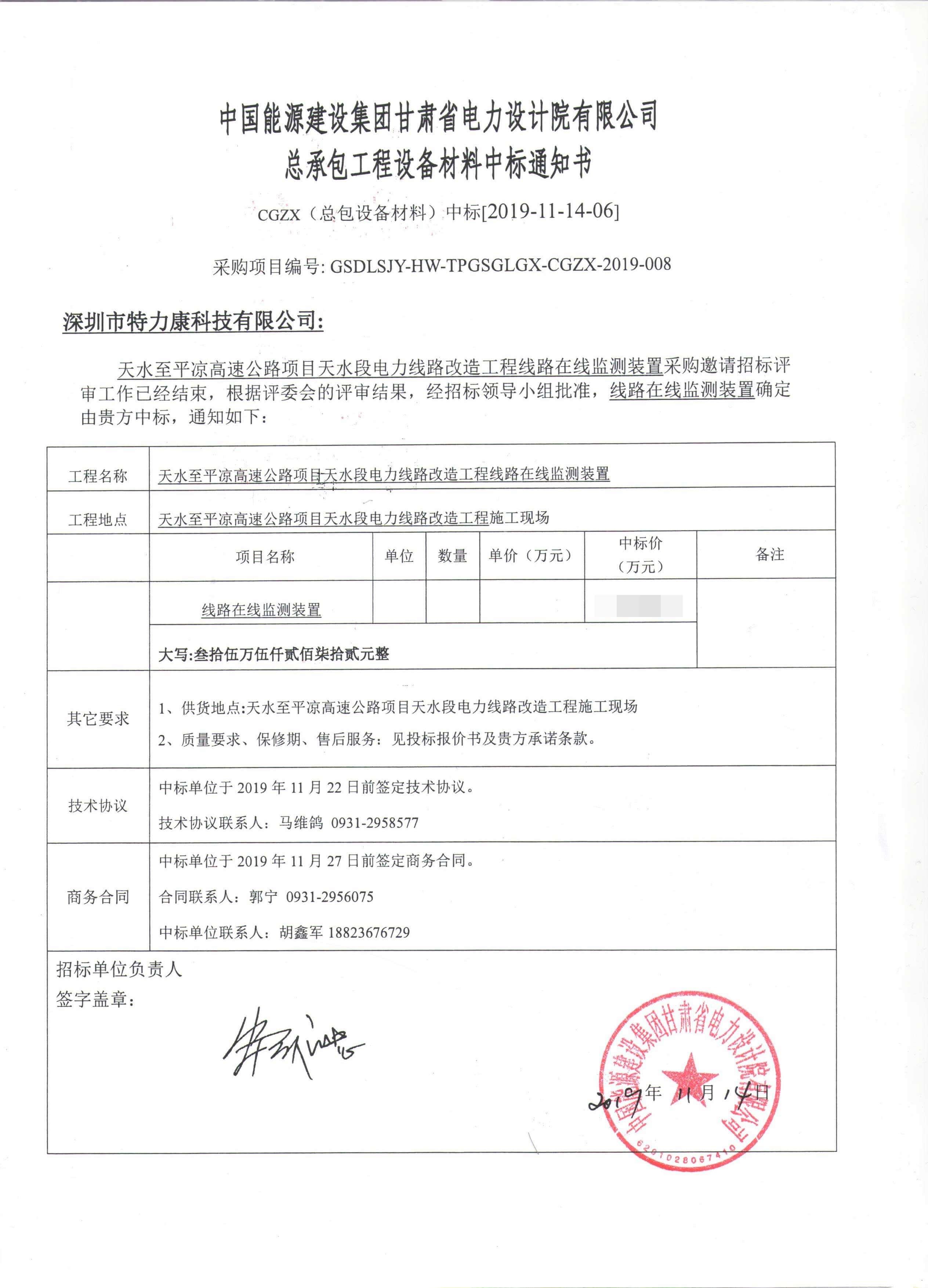 特力康中標(biāo)國(guó)網(wǎng)黑龍江送變電工程公司的2024年度第18次物資類競(jìng)爭(zhēng)性談判采購(gòu)項(xiàng)目——慶陽(yáng)驅(qū)鳥器物資框 特力康中標(biāo)國(guó)網(wǎng)甘肅省電力公司省管產(chǎn)業(yè)單位2024年第五次物資競(jìng)爭(zhēng)性談判授權(quán)采購(gòu)項(xiàng)目 中標(biāo)喜訊:深圳市特力康科技有限公司成功入圍許繼集團(tuán)綜合能源公司輸電線路視頻在線監(jiān)測(cè)裝置模塊集采項(xiàng)目 中標(biāo)喜訊:特力康成功中標(biāo)國(guó)網(wǎng)重慶市電力公司渝中一片區(qū)項(xiàng)目 特力康成功中標(biāo)國(guó)網(wǎng)天津市電力公司2024年第二次?物?資招標(biāo)項(xiàng)目 特力康中標(biāo)國(guó)網(wǎng)安徽省電力有限公司蕪湖供電公司2024年3月非物質(zhì)采購(gòu)項(xiàng)目 山東電網(wǎng) “穩(wěn)塔哨兵”:特力康智能桿塔傾斜監(jiān)測(cè)預(yù)警裝置筑牢電力桿塔安全防線 特力康科技輸電線路高清圖像監(jiān)控裝置,為河南輸電通道筑牢安全屏障 黃土高原護(hù)塔穩(wěn):特力康傾斜監(jiān)測(cè)裝置為山西電網(wǎng)筑牢根基 黔山冰防線:特力康 “數(shù)據(jù) + 圖像” 雙監(jiān)測(cè)守護(hù)貴州輸電線路 戈壁林區(qū)的 “火情哨兵”:特力康紅外熱成像裝置守護(hù)甘肅輸電線路 內(nèi)蒙電網(wǎng)裝上 “舞動(dòng)監(jiān)測(cè)眼”:特力康輸電線路防舞動(dòng)監(jiān)測(cè)系統(tǒng)守護(hù)線路安全 浙江電力裝上“氣象哨兵”:特力康裝置守護(hù)電網(wǎng)應(yīng)對(duì)臺(tái)風(fēng)暴雨 蜀道巡線不用“爬”:特力康視頻在線監(jiān)測(cè)裝置守護(hù)四川輸電鐵塔 風(fēng)雪中的 “防冰哨兵”:內(nèi)蒙古電力用特力康監(jiān)測(cè)系統(tǒng)筑牢覆冰防線 雙軸感知護(hù)塔穩(wěn):山西電力用特力康裝置破解采空區(qū)傾斜難題 寧夏配電線路安裝了我司防外破電子化智能警示牌