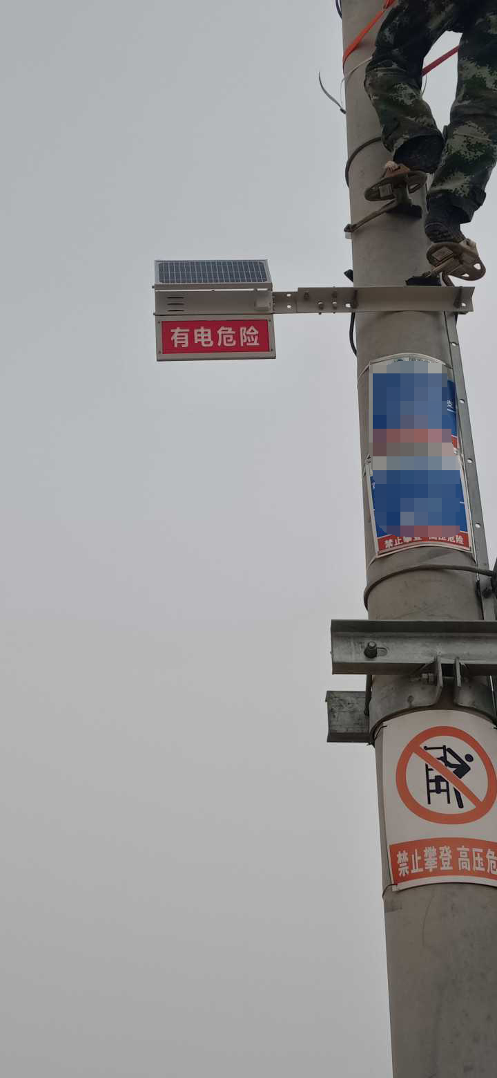 寧夏供電單位采購(gòu)安裝我司(深圳市特力康科技有限公司)高壓警示牌,該裝置采用太陽能供電及電池供電,白天當(dāng)有物體接近裝置時(shí),設(shè)備紅外感應(yīng)模塊立即啟動(dòng),由控制系統(tǒng)智能聯(lián)動(dòng)語音警示模塊,啟動(dòng)警笛告警,提醒行人、注意高壓輸電線路,夜晚設(shè)備則以LED燈標(biāo)語進(jìn)行警示。設(shè)備支持定時(shí)間自動(dòng)播放警笛以提醒在該線路內(nèi)的人員。