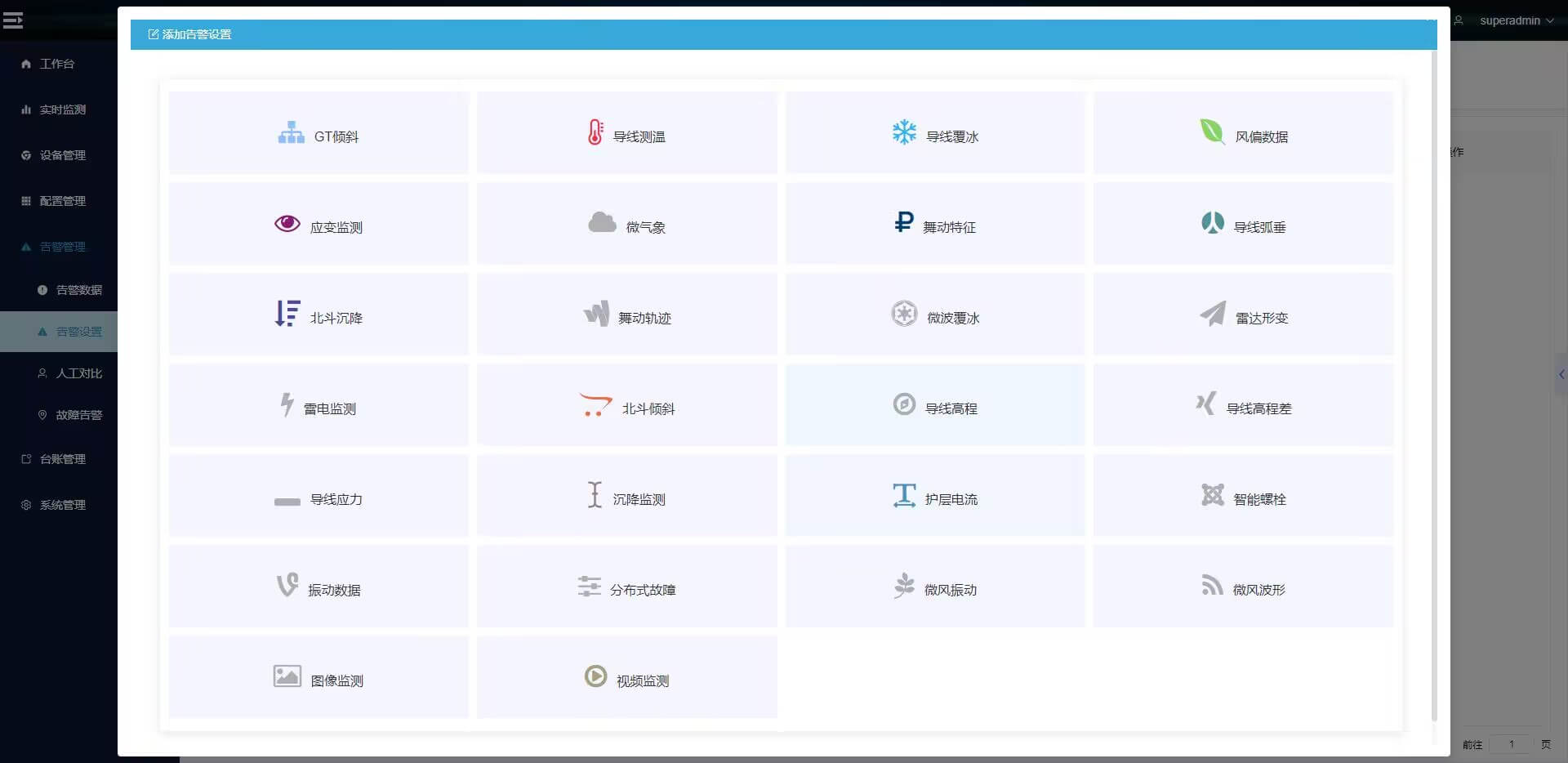 安全電網(wǎng)監(jiān)測系統(tǒng)軟件平臺TLKS-PMS主要由監(jiān)控平臺、設(shè)備通訊處理服務(wù)及各類子監(jiān)控巡視系統(tǒng)組成。整個系統(tǒng)以監(jiān)控平臺為核心,完成對各類子系統(tǒng)的整合,集中實現(xiàn)監(jiān)控數(shù)據(jù)處理、實時巡視、數(shù)據(jù)分析、數(shù)據(jù)推送等功能,并完成與其他系統(tǒng)的鏈接通信。實現(xiàn)對輸電線路現(xiàn)場視頻、施工環(huán)境、覆冰、氣象、振動、形變監(jiān)測等各種重要信息的集中收集、處理、巡視、預(yù)警等功能。