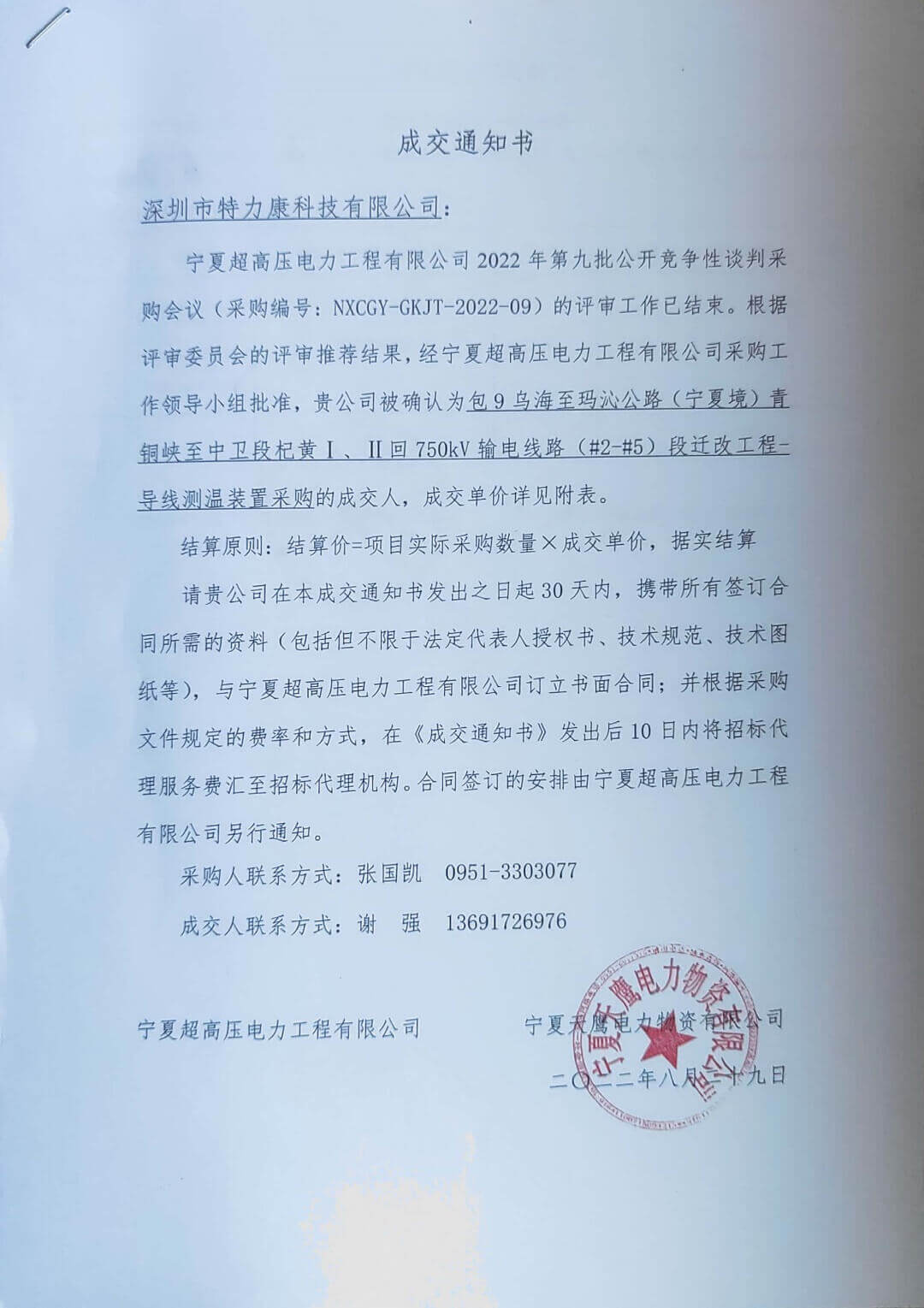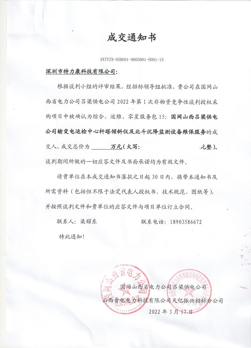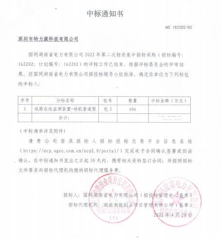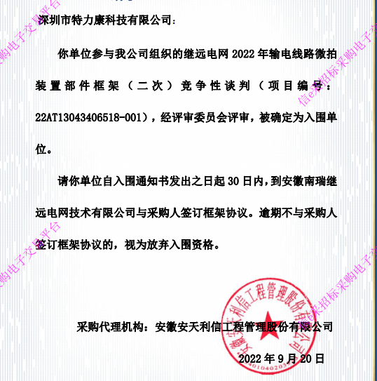 特力康中標(biāo)國網(wǎng)黑龍江送變電工程公司的2024年度第18次物資類競爭性談判采購項(xiàng)目——慶陽驅(qū)鳥器物資框 特力康中標(biāo)國網(wǎng)甘肅省電力公司省管產(chǎn)業(yè)單位2024年第五次物資競爭性談判授權(quán)采購項(xiàng)目 中標(biāo)喜訊:深圳市特力康科技有限公司成功入圍許繼集團(tuán)綜合能源公司輸電線路視頻在線監(jiān)測裝置模塊集采項(xiàng)目 中標(biāo)喜訊:特力康成功中標(biāo)國網(wǎng)重慶市電力公司渝中一片區(qū)項(xiàng)目 特力康成功中標(biāo)國網(wǎng)天津市電力公司2024年第二次?物?資招標(biāo)項(xiàng)目 特力康中標(biāo)國網(wǎng)安徽省電力有限公司蕪湖供電公司2024年3月非物質(zhì)采購項(xiàng)目 山東電網(wǎng) “穩(wěn)塔哨兵”:特力康智能桿塔傾斜監(jiān)測預(yù)警裝置筑牢電力桿塔安全防線 特力康科技輸電線路高清圖像監(jiān)控裝置,為河南輸電通道筑牢安全屏障 黃土高原護(hù)塔穩(wěn):特力康傾斜監(jiān)測裝置為山西電網(wǎng)筑牢根基 黔山冰防線:特力康 “數(shù)據(jù) + 圖像” 雙監(jiān)測守護(hù)貴州輸電線路 戈壁林區(qū)的 “火情哨兵”:特力康紅外熱成像裝置守護(hù)甘肅輸電線路 內(nèi)蒙電網(wǎng)裝上 “舞動(dòng)監(jiān)測眼”:特力康輸電線路防舞動(dòng)監(jiān)測系統(tǒng)守護(hù)線路安全 浙江電力裝上“氣象哨兵”:特力康裝置守護(hù)電網(wǎng)應(yīng)對臺(tái)風(fēng)暴雨 蜀道巡線不用“爬”:特力康視頻在線監(jiān)測裝置守護(hù)四川輸電鐵塔 風(fēng)雪中的 “防冰哨兵”:內(nèi)蒙古電力用特力康監(jiān)測系統(tǒng)筑牢覆冰防線 雙軸感知護(hù)塔穩(wěn):山西電力用特力康裝置破解采空區(qū)傾斜難題 寧夏配電線路安裝了我司防外破電子化智能警示牌